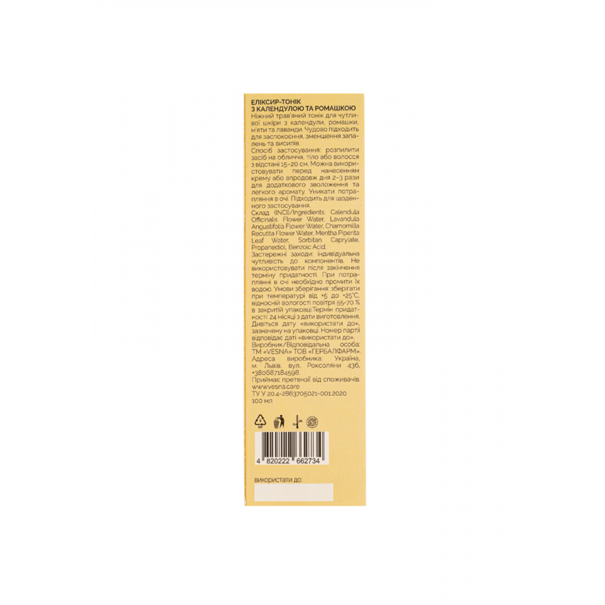 VESNA Эликсир-тоник с календулой и ромашкой, 100 ml 1229