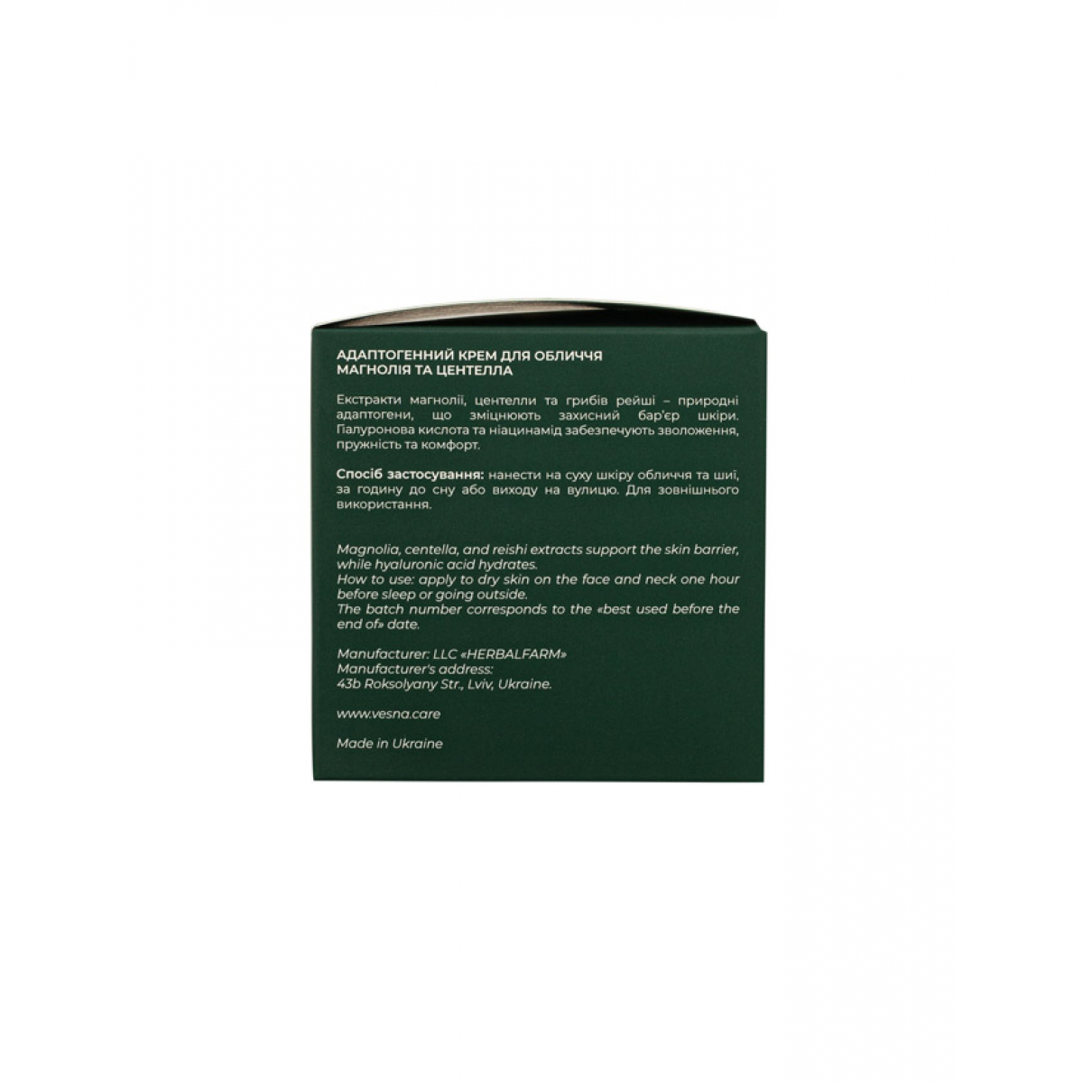Экстракты магнолии, центеллы и грибов рейши действуют как природные адаптогены: укрепляют барьерную функцию, успокаивают раздражение, стимулируют регенерацию. Благодаря комплексу увлажняющих и питательных компонентов крем обеспечивает долговременный комфорт без липкости или жирного блеска. После нанесения кожа выглядит свежей, мягкой, увлажненной и более сбалансированной.