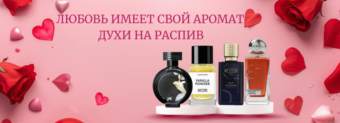 ✨ В честь Дня влюблённых дарим приятный бонус — скидку до –15% на парфюмерию на распив, которая действует до 15.02. Это отличная возможность выбрать аромат для себя или в подарок по ещё более выгодной цене. В День влюблённых важно не только дарить вещи, но и создавать эмоции. Несколько капель любимого парфюма могут напоминать о тёплых объятиях, совместных прогулках и особенных словах. Ароматы хранят воспоминания — и в этом их магия.